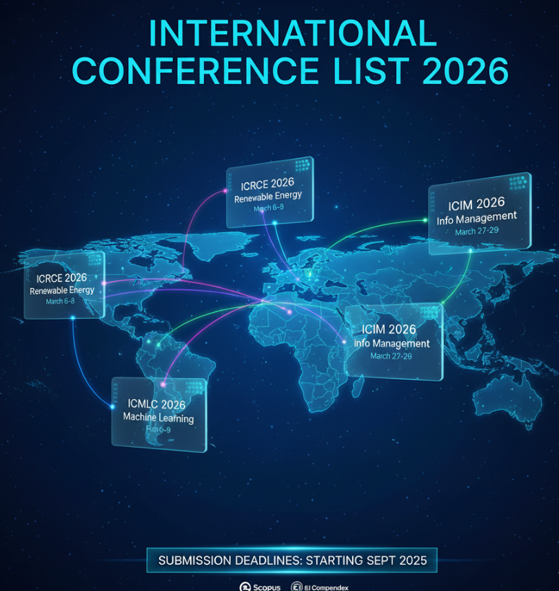 The following is a curated list of high-quality international conferences scheduled for 2026. These events, all indexed in major databases like EI Compendex and Scopus, represent excellent opportunities for researchers to present their work and subsequently have it published through esteemed academic channels.