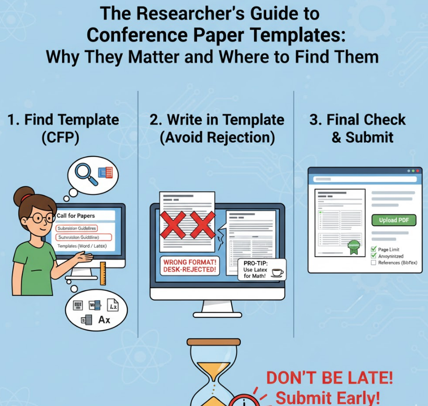 A conference paper template is a pre-formatted document file (usually in Microsoft Word or LaTeX) provided by the conference organizers or publishers (like IEEE or ACM).