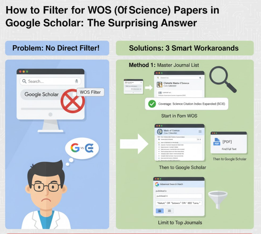 This forces Google Scholar to search for your topic only within your pre-vetted list of high-quality, WOS-indexed journals.